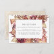 Cartes élégantes et fleuries de l'enceinte de réception de mariage avec des fleurs d'aquarelle bordeaux, rousses et de corail avec un feuillage luxuriant dans des tons de terre brune. Personnalisez la réception de mariage en ajoutant vos coordonnées de réception. Conçu pour coordonner avec notre collection de mariages floraux du désert de Boho.