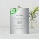 Cette carte d'enceinte de réception à fleurs vert émeraude et argent très élégante est la meilleure façon de garantir à vos invités mariages tous les détails importants dont ils auront besoin pour votre grande journée. Le design élégant présente un style luxueux d'argent métallique et vert émeraude, avec un beau bouquet de roses vertes et blanches dans le coin supérieur gauche. Tous les détails peuvent être facilement customisés pour correspondre à votre thème mariage. Au contraire, vous trouverez un autre délicat bouquet de rose verte en bas et vous aurez également l'avantage d'ajouter votre site mariage si vous le souhaitez.