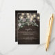 Vous cherchez un moyen de faire entrer la nature dans votre jour de mariage ? Que vous planifiez un mariage d'extérieur d'inspiration rustique ou que vous aimiez simplement ajouter une touche naturelle à votre mariage, cette papeterie vous aidera à donner vie à tout. Montrez votre style artistique avec un arrière - plan en bois foncé avec une aquarelle verdure fleurie et des lampes à cordes ornent le dessus.