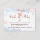 A sweet baby shower design featuring an adorable teddy bear holding pastel blue and blush balloons with soft clouds and star accents. The “Books for Baby” wording makes it a lovely choice for asking guests to bring a favorite book for the little one instead of a card. With its gentle watercolor style and dreamy pastel palette, this design is perfect for a baby boy celebration or a charming teddy bear baby shower theme.