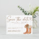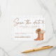 Définissez le ton de votre mariage western avec ce faire-part de mariage Rustique Campagne avec de charmantes bottes de cowgirl, un chapeau de cowboy et des accents floraux doux sur un fond en bois rustique. Parfait pour les mariées campagnardes et les célébrations de mariage dans une grange, ce design allie le charme sudiste à l'élégance romantique. Personnalisez avec vos noms, date et détails de l'événement pour créer un souvenir que vos invités adoreront. Idéal pour les mariages western, cowboy, rustiques ou sur le thème de la nature.