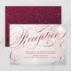 Écriture manuscrite romantique calligraphiée en faux burgundy scintillant sur fond subtil blush bokeh, élégant et sophistiqué, superbes cartes de réception de mariage pour mariage de luxe, mariage vintage glamour et mariage traditionnel au printemps, en automne et en hiver.