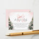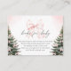Baby shower livres pour carte d'enceinte pour bébé qui dispose d'un arc rose avec des flocons de neige, pins enneigés, parfait pour un baby shower à thème hivernal.