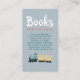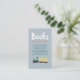 Ce baby shower mignon et moderne "livres pour bébé" design de carte d'enceinte comprend des illustrations de voyage en train, avec un motif de transport bleu assorti sur le dos. Il y a de la place pour demander aux invités d’apporter un livre à ajouter à la nouvelle bibliothèque pour bébé, d’utiliser le poème fourni ou de créer votre propre message !