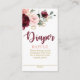 Carte de tombola à Baby shower fleuri à l'aquarelle bordeaux et rose