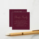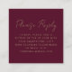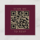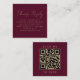Cette élégante carte de boîtier RSVP du site mariage moderne présente du texte de couleur or sur un arrière - plan bordeaux. Le titre apparaît dans un magnifique script d'écriture manuscrite, avec texte personnalisable ci-dessous dans la police sans serif. Entrez l'URL de votre site Web mariage pour générer un code QR à l'envers, encadré par les mots "scan me to RSVP".