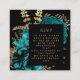 Cette carte RSVP mariage élégante et humoristique présente un bouquet floral luxuriant et romantique en turquoise avec un faux papier doré et un feuillage de parties scintillant sur un arrière - plan noir. Customisez le texte rose rose dans des polices de style sur un rectangle noir. Créez facilement un code QR au dos en entrant l'URL de votre site Web mariage.