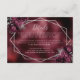 Cette élégante carte de détails mariage moderne comporte un cadre géométrique argenté décoré de fleurs bordeaux et argentées sur une image arrière - plan en faux feuille bordeaux foncé. Le texte personnalisable combine écriture fantaisie gris argenté et fontes cuivre. L'envers présente la même conception de fausse feuille bordeaux.