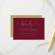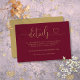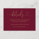 Cette élégante carte de détails de mariage en burgundy et or avec calligraphie en forme de cœur peut être personnalisée avec vos informations en typographie chic. Conçue par Thisisnotme©
