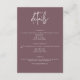 Faites une déclaration avec notre magnifique carte de détails mariages avec des pivoines bordeaux et crème, des nénuphars, des hydrangées, et une belle gamme de fleurs mauves, blanches et violettes, élégamment nichées au milieu d'un feuillage vert profond. Avec un arrière - plan en mauve poussiéreux, notre design donne le ton parfait pour votre célébration romantique. Notre titre de script moderne ajoute une touche de sophistication et de style, tandis que le simple texte blanc sans serif garde l'accent sur votre journée spéciale. Que vous planifiez une affaire somptueuse ou un rassemblement intime, ce design impressionne vos invités et prépare le terrain pour une expérience mariage inoubliable. Créé par Simply Farmhouse Press.
