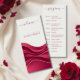 Featuring layered abstract waves in deep, luxurious burgundy flowing over a crisp barely ivory background, this card captures the elegant movement of fabric installations and ceremony backdrops that define today’s trending wedding décor. Subtle highlights and lowlights create a soft, satin-like dimension, adding depth without distracting from your details.