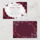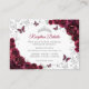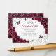 Burgundy silver Quinceanera reception details enclosure cards. Features, script font, silver butterflies, watercolor roses and tiara. Perfect for an elegant princess style glam celebration. Personalize with your own details.
