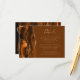 Le bord gauche de cette élégante carte de détails mariage moderne dispose d'une bordure d'aquarelle orange brûlée, recouverte d'une parties scintillant en faux or. Le titre apparaît dans un script d'écriture manuscrite, avec le texte personnalisable ci-dessous en police de cuivre couleur or sur un arrière - plan brun noix de muscade. L'envers est assorti d'une agate orange brûlée et dorée.