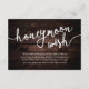 Célébrez le début de votre voyage ensemble avec notre thème élégamment rustique de chalet rustique moderne à fond en bois sombre, carte "vœu de lune de miel" incluse avec faire-part de mariage, vœu, argent liquide. Mettant en vedette un mélange sophistiqué de script moderne et d'allure romantique, chaque carte est méticuleusement conçue pour transmettre l'essence de votre jour spécial. Parfaitement adapté aux couples qui cherchent un moyen unique de partager leurs rêves de lune de miel, cette carte invite vos proches à contribuer à des expériences inoubliables. Qu'elle soit nichée dans une enveloppe luxueuse ou présentée avec vos faire-part de mariage, notre carte ajoute une touche d'enchantement à votre célébration, promettant des souvenirs chéris qui durent toute une vie. Conçu par TeeshaDerrick.