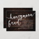 Célébrez le début de votre voyage ensemble avec notre thème de fond en bois sombre de chalet rustique moderne élégamment rustique, carte "Cadeau de lune de miel" incluse dans l'invitation de mariage, vœu, argent liquide. Mettant en vedette un mélange sophistiqué de script moderne et d'allure romantique, chaque carte est méticuleusement conçue pour transmettre l'essence de votre journée spéciale. Parfaitement adapté aux couples qui cherchent une façon unique de partager leurs rêves de lune de miel, cette carte invite vos proches à contribuer à des expériences inoubliables. Qu'elle soit nichée dans une enveloppe luxueuse ou présentée avec vos invitations de mariage, notre carte ajoute une touche d'enchantement à votre célébration, promettant des souvenirs chéris qui durent toute une vie. Conçu par TeeshaDerrick.