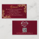 Cadre Feuille d'or sur la carte de boîtier Bourgogne avec un élégant arrière - plan bordeaux avec un cadre de feuilles d'or. Détails pour plus d'informations sur l'avant et le code QR avec cadre de monogramme du coeur sur l'arrière. Conçu pour coordonner avec la collection de Mariages "Doves, Heart & Gold Feuilles". Pour modifier les détails, cliquez sur "Personnaliser". Pour déplacer le texte ou modifier la taille, la police ou la couleur du texte, cliquez sur "Cliquez pour customiser plus loin"