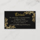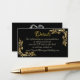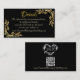 Cadre Feuille d'or sur Black Encape Card avec un élégant arrière - plan noir avec un cadre de feuilles d'or. Détails pour plus d'informations sur l'avant et le code QR avec cadre de monogramme du coeur sur l'arrière. Conçu pour coordonner avec la collection de Mariages "Doves, Heart & Gold Feuilles". Pour modifier les détails, cliquez sur "Personnaliser". Pour déplacer le texte ou modifier la taille, la police ou la couleur du texte, cliquez sur "Cliquez pour customiser plus loin"