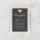Cette carte de détails de réception de mariage vintage chic comporte une image imprimée d'un cadre en bois rustique blanchi à la chaux avec un insert à l'aspect tableau noir. Le style typographique de la lettre ajoute de l'élégance et de la romance. Parfait pour un mariage vintage, rustique ou de thème champêtre.