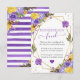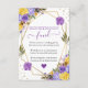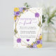 Élégant design de fleurs et de feuillage de printemps violets et jaunes aquarelle bohème avec cadre géométrique doré