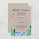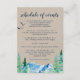Cette carte de calendrier du week-end de mariage à Kraft Mountain est parfaite pour un mariage de destination en montagne. Le design présente un paysage sauvage peint en bleu et vert avec des arbres, des oiseaux et des montagnes dans le style aquarelle sur un fond de papier kraft clair faux.