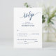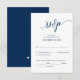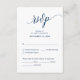 C'est la belle calligraphie moderne Elegant, carte de boîtier RSVP (Respond), en police bleue marine, où vous pouvez modifier, modifier la couleur et le format selon vos besoins de conception, avec options de repas, sièges réservés, nombre de participants et option de demande de chanson. #TeeshaDerrick