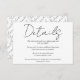 Calligraphie script moderne carte boîtier mariage noir et blanc. Un design mariage minimaliste et élégant avec le mot "Détails" dans le script calligraly. Le dos comprend un motif noir et blanc de vos noms. Veuillez noter que si vos noms à l'arrière prennent plus ou moins d'espace, customisez-le pour augmenter ou diminuer la taille du texte en conséquence.