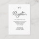 Carte de réception classique élégante avec une police de caractères décorative qui accentue cette carte et son schéma de couleurs minimaliste. Design noir et blanc simple, efficace et souvent discret. Venez voir toutes les collections dans notre magasin pour une expérience de mariage complète.