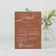 Un thème de dessert en terre cuite intemporelle et une carte élégante de détails de mariage avec un script de calligraphie raffiné sur un arrière - plan classique, parfait pour une célébration mariage formelle et sophistiquée. Pour la personnalisation ou des produits supplémentaires avec ce design, n'hésitez pas à me contacter.