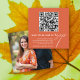 Code QR moderne en ligne Verona coucher de soleil calligraphie orange RSVP mariage de automne carte d'enceinte avec photo. Vos invités peuvent utiliser cette carte de boîtier à RSVP en ligne en utilisant le code QR. Le dos comprend une photo du couple.