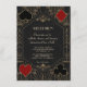 Luxury Gold Black Great Gatsby Wedding card design. Romantic, Vintage card design featuring a Great Gatsby art deco style, a Roaring 1920's old Hollywood mood, with faux gold foil Fleur-de-lis overlay, gorgeous fonts, playing cards suits, on a black textured background. Use Customize tool to add your information. For more, visit please, my Casino Poker Wedding Collection.