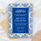 Carte D'accompagnement Cérémonie Faux Gold Foil Blue Damask Islamic Mehnd