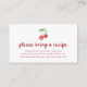 Carte D'accompagnement Cerises rouges Whimsical Retro | Demande de recett
