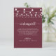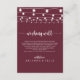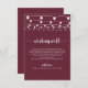 Ce mariage bordeaux à cordes souhaitant une carte d'enceinte est parfait pour un mariage rustique. Le design est orné de superbes lampes à cordes peintes à la main dans un arrière - plan bordeaux.