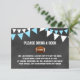 Beau S'IL VOUS PLAÎT APPORTEZ UN LIVRE inserts pour un baby shower à thème de FOOTBALL sportif. Arrière - plan de tableau de bord avec drapeaux de la fête du bunt suspendu avec football. Ajoutez à vos invitations. Bleu turquoise et blanc. Obtenir les objets correspondants dans la collection "SPORTS THEME BABY SHOWER"