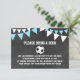 Beau S'IL VOUS PLAÎT APPORTEZ UN LIVRE inserts pour un baby shower à thème sportif SOCCER. Arrière - plan de tableau de bord avec drapeaux de la fête du bunt suspendu avec football. Ajoutez à vos invitations. Bleu turquoise et blanc. Obtenir les objets correspondants dans la collection "SPORTS THEME BABY SHOWER"