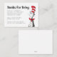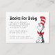 Encouragez vos invités à offrir des livres à la place de cartes avec cette "Chat dans les Livres Casquettes pour Bébé" carte d'insertion, mettant en vedette le personnage bien-aimé Dr Seuss. Cette carte fantaisie est parfaite pour n’importe quel chat dans le baby shower sur le thème du Casquette, ce qui permet aux invités de participer facilement à la création de la première bibliothèque d’un bébé. Ajoutez une touche amusante et inspirée de Seuss à votre registre de baby showers, et invitation vos proches à apporter un livre pour célébrer l'arrivée prochaine de votre petit.