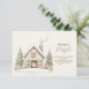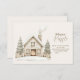 Fêtez l'arrivée d'un petit baby shower avec ce design chaleureux. Un charmant cottage peint à la main et doté d'une cheminée brillante est niché entre des pins enneigés, créant un cadre boisé paisible. Les tons taupe doux et l'esthétique nordique minimale apportent chaleur et élégance rustique à votre fête saisonnière.