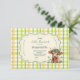 Ajoutez une touche de plaisir et de charme irlandais à votre baby shower avec la Lucky Little Shamrock Diaper Raffle Enclume Card! Conçu pour correspondre à votre Saint Patrick’s Day ou à votre baby shower sur le thème du shamrock, cette carte invitation les invités à participer à une délicieuse tombola de couches tout en restant sur le thème avec des détails festifs et élégants. Caractéristiques : Design : présente une illustration en shamrock d'aquarelle et en fer à cheval or, complétée par un schéma de couleurs vert et or. Texte : "Apportez un paquet de couches, n'importe quelle taille fera, pour une chance de gagner un prix qui est juste pour vous!" écrit dans la calligraphie moderne et des polices faciles à lire. Personnalisation : les options de texte modifiable vous permettent de personnaliser les détails du prix ou les instructions spéciales. Taille : Compacte et pratique, de taille parfaite pour inclure avec vos invitations. Correspondance de thème : S’harmonise parfaitement avec le Baby shower "Lucky Little Shamrock" et le décor sur le thème de St. Patrick. Encouragez les invités à contribuer à votre réserve de couches de manière amusante et festive! Avec cette adorable carte d’enceinte, vous apportera un peu de chance irlandaise à votre famille grandissante et aux activités de votre douche.
