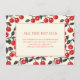 This wedding enclosure card features a charming design with a repeating pattern of glossy red cherries and black leaves on a cream background, creating an inviting and cheerful atmosphere. The central text area is framed by a subtle border, highlighting the elegant serif font used for "ALL THE DETAILS" and the clear sans-serif font for additional information. The combination of vibrant colors and organic motifs gives the card a timeless yet modern aesthetic, perfect for guiding guests to further details about the celebration. Ideal for adding a personal touch to wedding stationery, this card blends traditional elements with contemporary style.