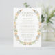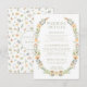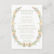Elégante aquarelle chaude fleurie wreath rustique jardin d'été jardin de détails mariage carte avec mariée et marié monogramme au dos de la carte.