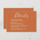 Détails mariage simple et chic carte d'enceinte comprend blanc élégant script calligraphie et typographie moderne sur un arrière - plan orange brûlé. Ajoutez simplement les détails de votre mariage. Conçu exclusivement pour vous par Happy Dolphin Studio. Si vous avez besoin d'aide ou de produits correspondants, veuillez nous contacter à happydolphinstudio@outlook.com . Nous sommes heureux de vous aider à faire de votre mariage la plus belle journée!