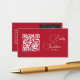 High-Impact Front: Features a prominent, stylized QR code in soft pink (#fadadd) against a bold deep red background (#b11226) for an instant, modern "scan-to-RSVP" experience.