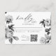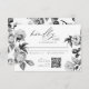 Une carte de réponse élégante pour votre mariage, avec des accents floraux noirs et blancs élégants et un code QR pratique pour les réponses en ligne. Parfait pour les célébrations sur des thèmes modernes et classiques.