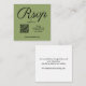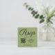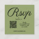 Ces cartes de boîtier mariage vert moderne sont un moyen facile pour vos invités à RSVP sur votre site mariage. Pour créer votre propre site QR Code, entrez simplement son URL dans la zone de texte lors de la personnalisation de vos cartes.