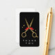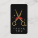 Ces ciseaux pailletés or font une carte de remerciement parfaite pour votre entreprise. Texte facile à ajuster ! Une combinaison de couleurs classique noir et or. Modèle élégant de coiffeur avec un ruban rouge. De cette façon, vos clients se souviendront de vous !