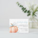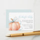 Cet élégant et charmant baby shower Books for Baby Books card présente une belle aquarelle d'un citrouille avec un ruban bleu délicat, parfait pour célébrer l'arrivée prochaine d'un petit à l'automne.