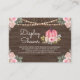 Elégante carte baby shower encastrée avec de belles fleurs sur un arrière - plan en bois de grange.