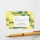 Carte de douche nuptiale à thème citron d'aquarelle illustrant l'aquarelle du motif citron et branche de verdure. Élégante écriture calligraphique, parfaite pour les mariages du printemps, de l'été ou de l'automne. Éléments correspondants disponibles.