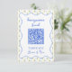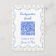 Faites des cadeaux sans soucis avec cette carte de code QR pour fonds de lune de miel élégant! Doté d'un chic motif citron méditerranéen aux délicats accents bleus, cette carte allie charme intemporel et confort moderne. Parfait pour les mariages de destination, les célébrations inspirées de la côte amalfitaine et les couples qui préfèrent les contributions numériques. Personnalisez avec vos noms pour une façon élégante et sans tracas de recueillir des cadeaux de lune de miel.