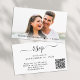 Carte chic d'accompagnement RSVP de mariage qui présente "rsvp" dans un script élégant. Entrez l'adresse de votre site web de mariage pour créer un code QR que vos invités pourront scanner pour répondre en ligne. Le verso présente votre photo superposée avec vos prénoms et la date de votre mariage réunis par un cœur.